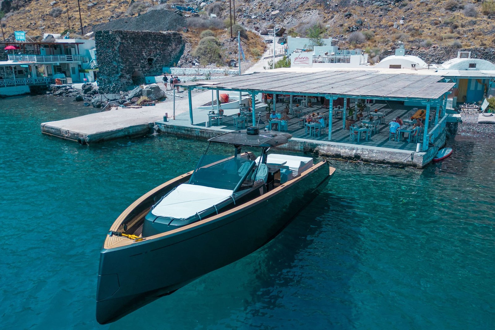 A dream of a place that would revive the pure carelessness of the Greek summers of the past, like a journey into laid back memories. Tucked away in a picturesque fishing village in Thirasia and in the weather-protected Korfos Bay, just 2 nautical miles from bustling Oia and Ammoudi, Qhera quietly touches the sea and invites you to a unique dining experience of unpretentious luxury.